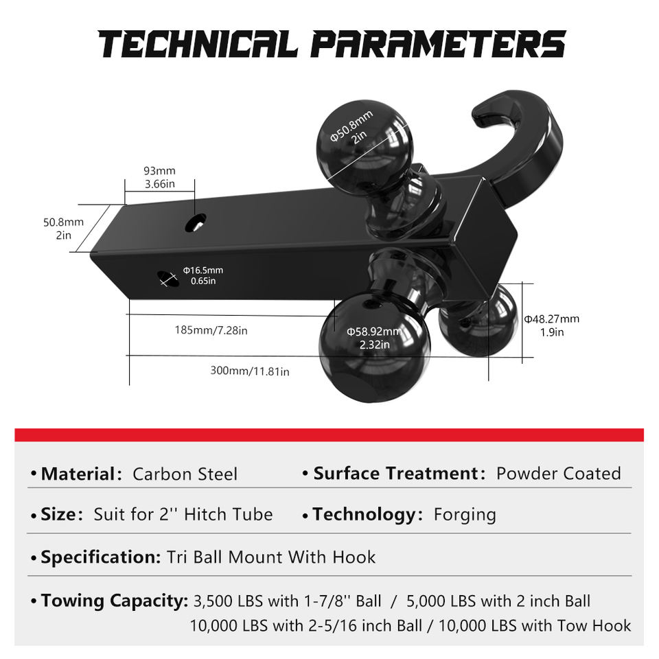 Nombre del producto:Enganche de remolque con montaje de bola triple y gancho