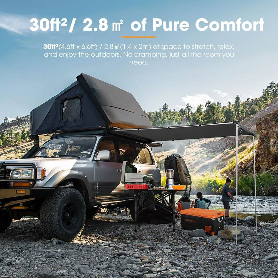 Toldo Lateral Desplegable para Techo de Vehículo Ambull Factory, 30 pies², Protección Solar UPF50+, Resistente a la Intemperie, para Automóvil