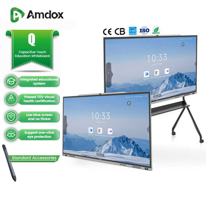 Tablero inteligente interactivo de la marca Amdox, pizarra Nano de proyección 4K Android 13, equipo educativo de panel plano táctil de 40 puntos
