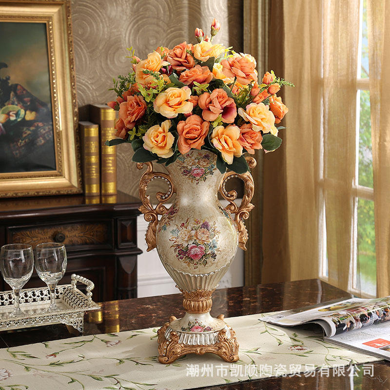 American Country Large-Jarrón de porcelana rústica para Decoración