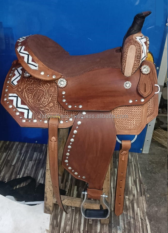 Hecho a mano de cuero genuino Western Pleasure Trail Riding silla antiguaNombre del producto