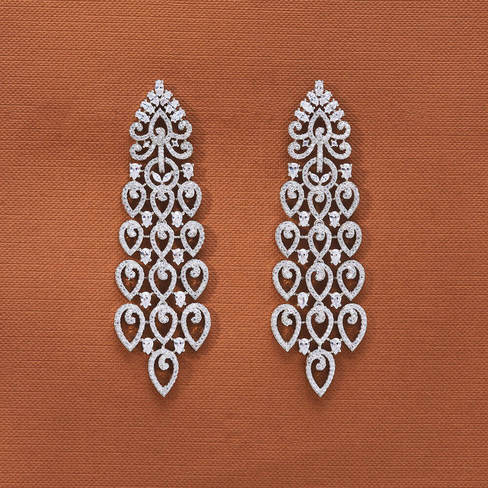 American Diamond Classic Two Tone Rodio Pendientes colgantes Diseño elegante de moda