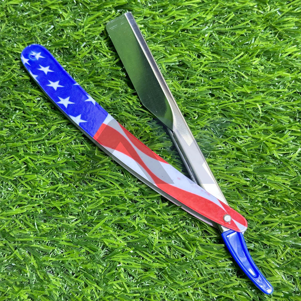 Navajas de Afeitar con Diseño de Bandera Estadounidense, Hoja Expuesta, Deslizables, Rectas, con Logotipo Personalizado para Barberos