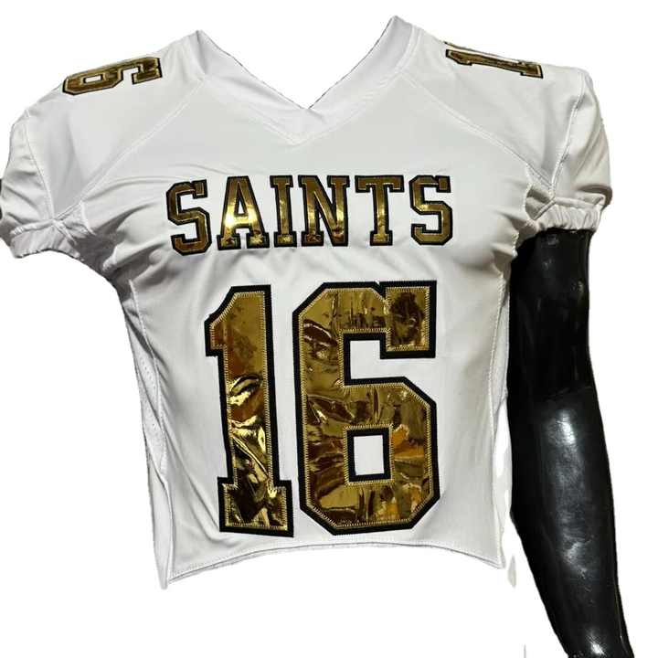Camiseta de fútbol americano de talla grande bordada transpirable pantalones de sublimación estirables mangas cortas fotos reales-última moda