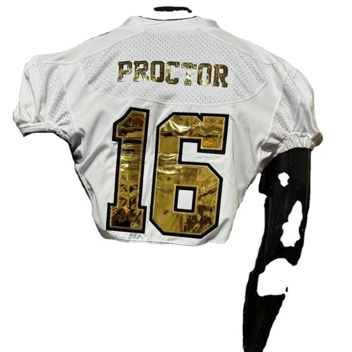 Jersey de fútbol americano bordado de talla grande pantalones de sublimación elásticos transpirables Pakistán hizo fotos reales hechas en fábrica