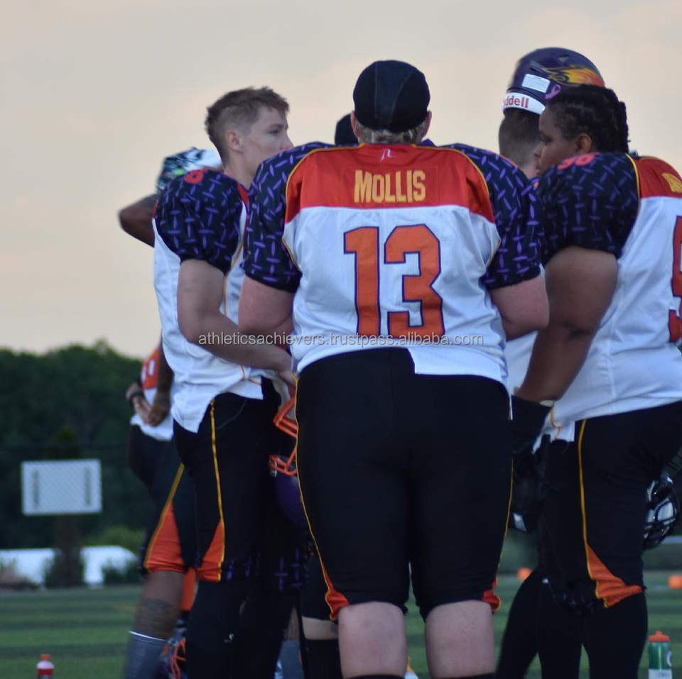 Camiseta de fútbol americano juvenil de diseño personalizado, manga corta transpirable, impresión por sublimación específica del equipo, conjuntos de talla grande