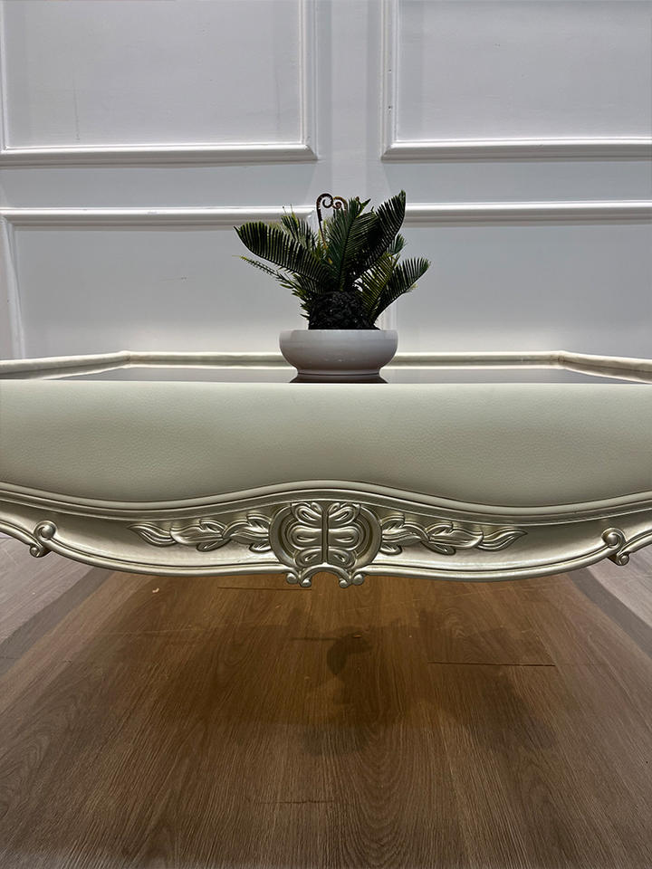 Mesa de centro tallada neoclásica para sala de estar de madera maciza de lujo ligero estilo Palacio americano