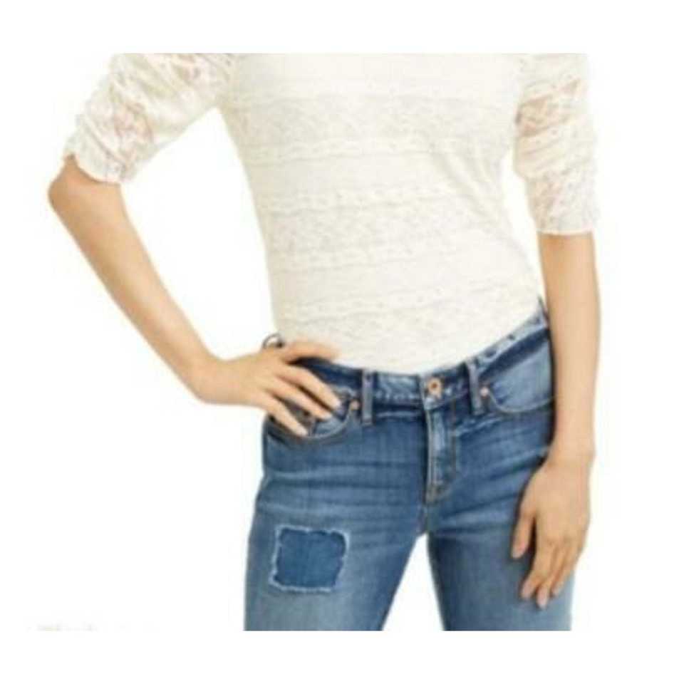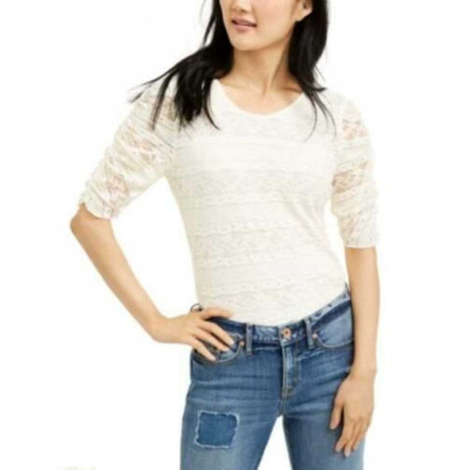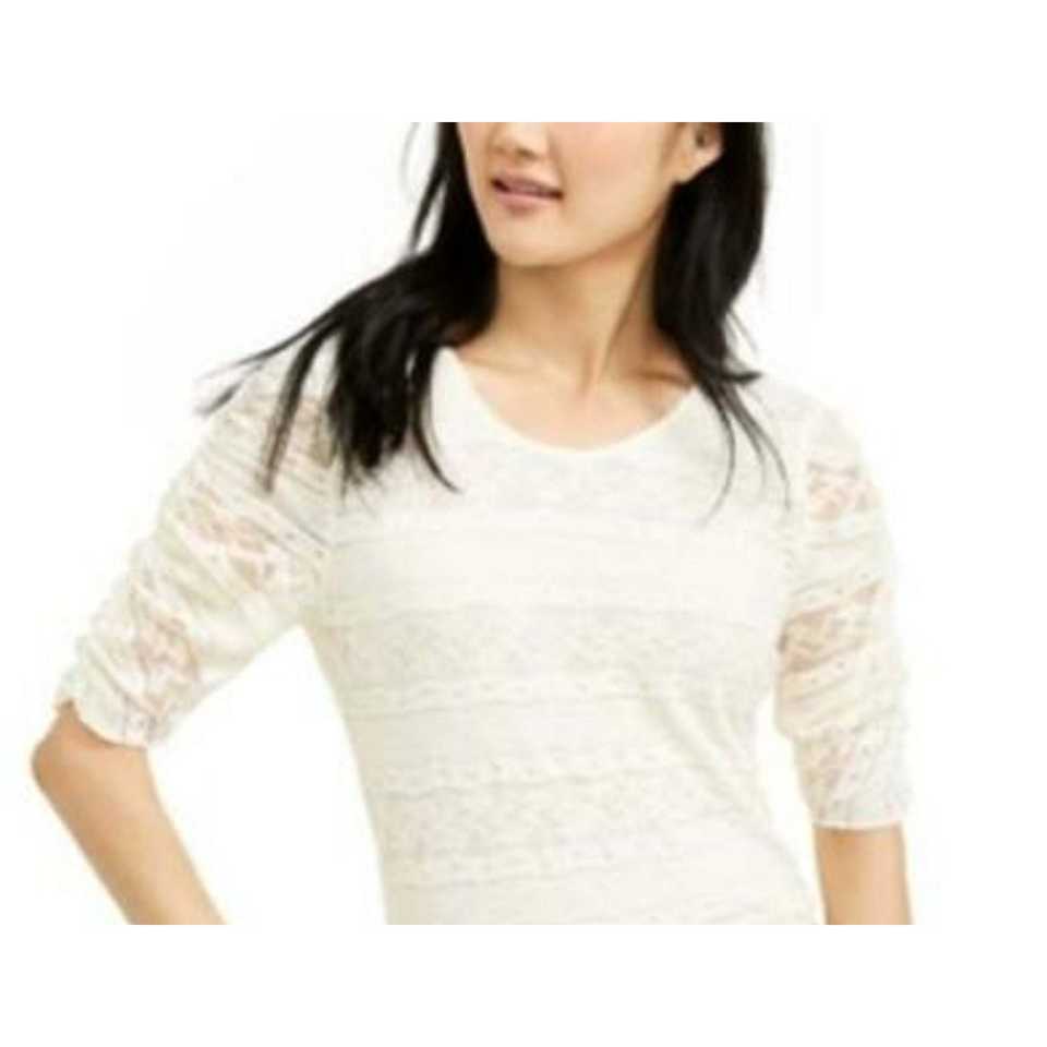 Blusa de Encaje con Lazos en la Espalda para Niñas American Rag, Cuello con Lazo, Patrón Bordado, Seda, Oficina, Formal, Blanca, Talla Pequeña/XL