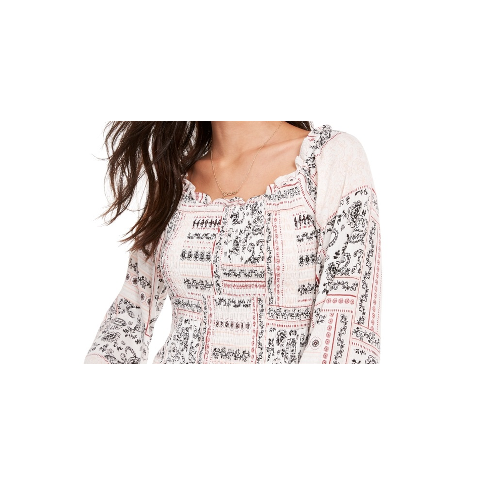 Blusa con mangas poéticas, fruncido y estampadoEstilo