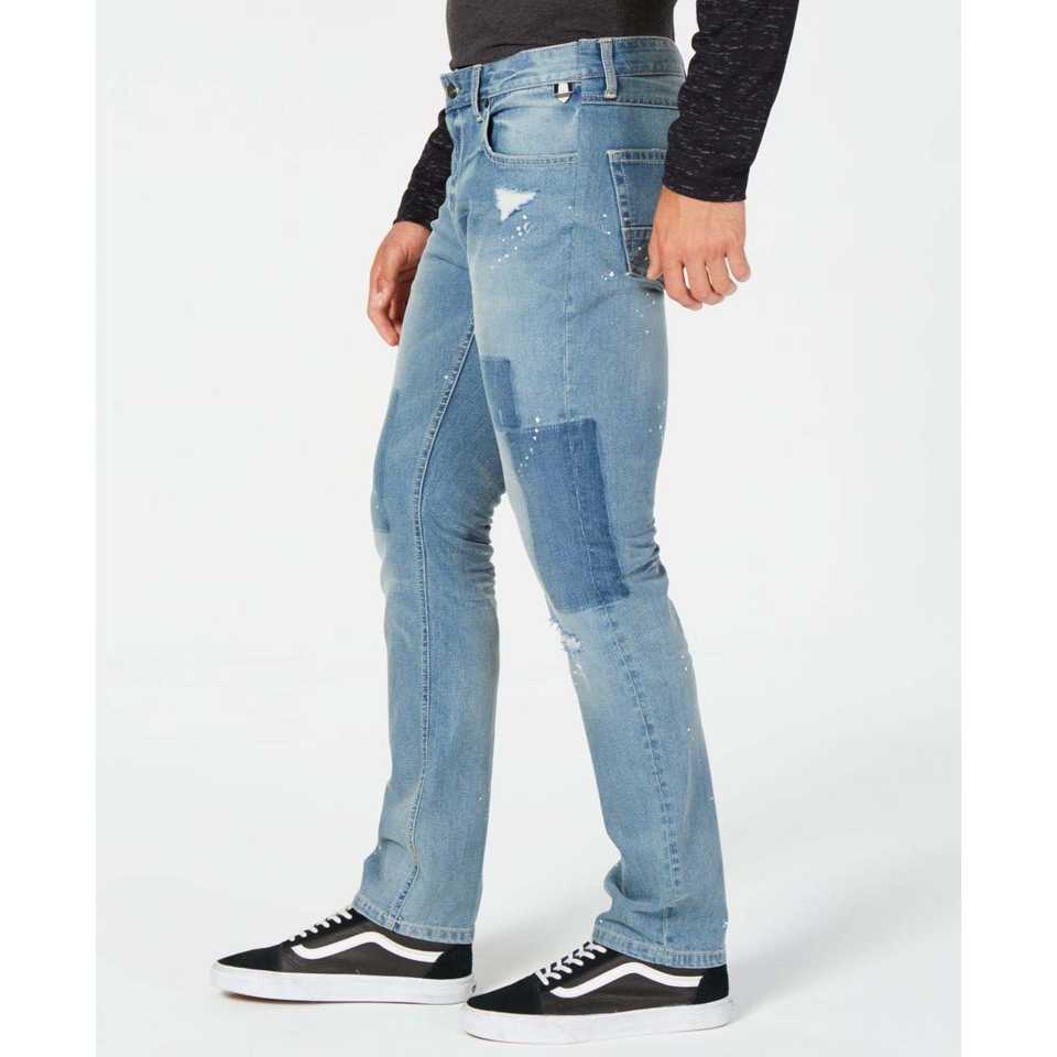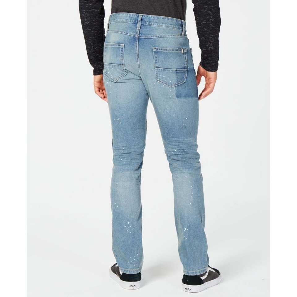 Jeans de Mezclilla Elásticos Slim Fit para Hombre, Estilo Patchwork con Diseño de Salpicaduras de Pintura, Marca American Rag, Talla 32x34