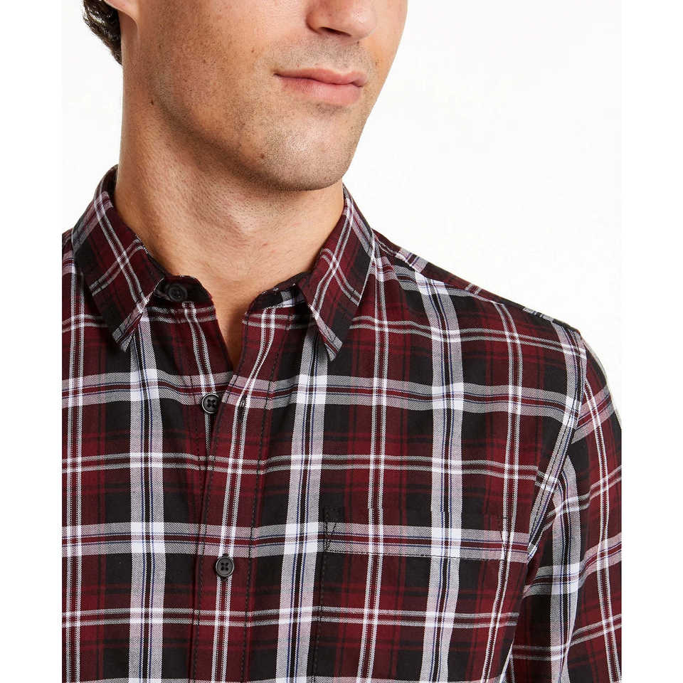 Camisa Casual a Cuadros Gabe de American Rag para Hombre, Color Rojo, Talla Mediana, Antiarrugas, con Cuello con Capucha, Mangas Cortas y Largas para Otoño