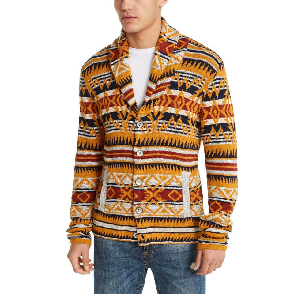 Cárdigan American Rag para Hombre, Estampado Midwest Canyon, Diseño Vintage a Rayas, Tejido 100% Algodón, Invierno, Botones, Naranja, Talla X-Large