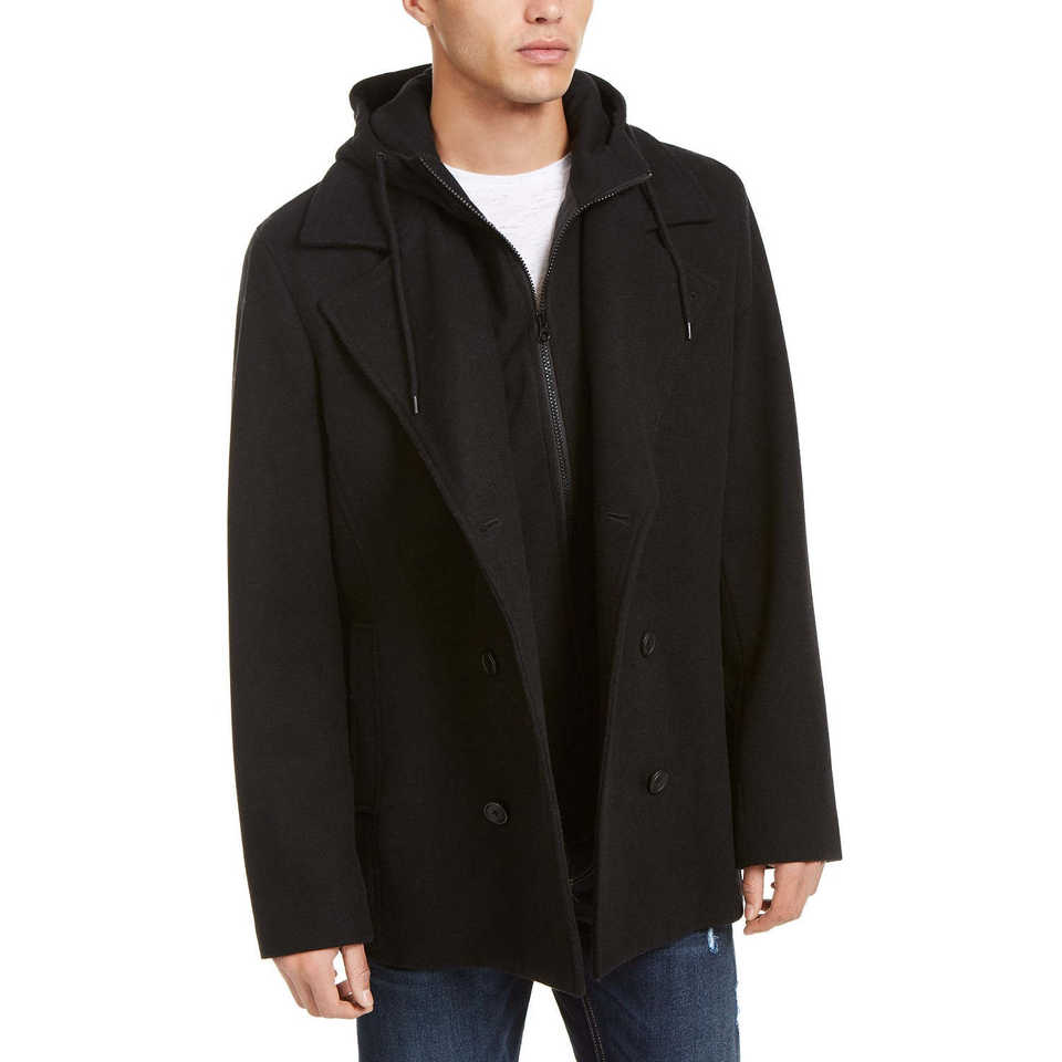 Abrigo de lana sólido American Rag para hombre, estilo Peacoat, con botones decorativos, largo, de cachemira, color negro, talla M