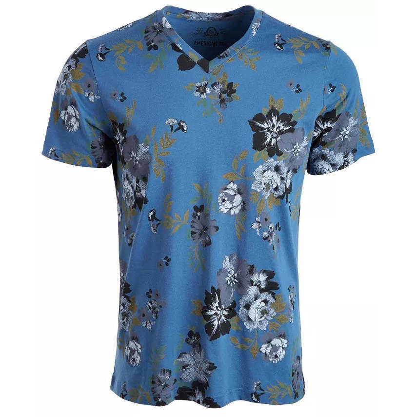 Camiseta Floral Open Ground para Hombre de American Rag, Color Azul Marino, Diseño Sólido con Logotipo, Talla Mediana, Estilo Deportivo