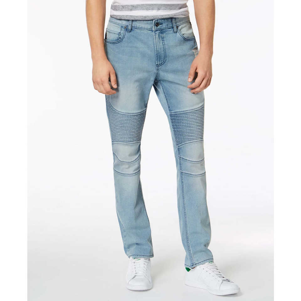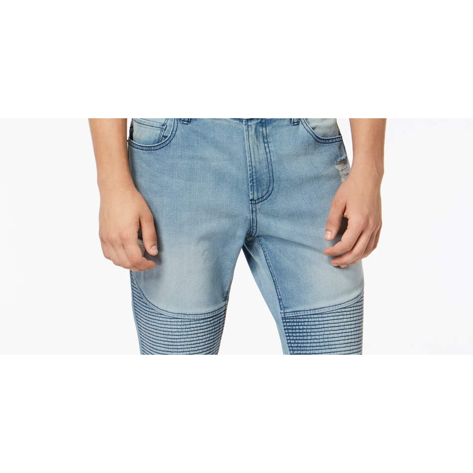 American Rag Jeans Moto para Hombre, Slim Fit, Elásticos, Desgastados, Transpirables, de Mezclilla, Estilo Lápiz, Azul 38X32, Técnica de Tejido de Punto