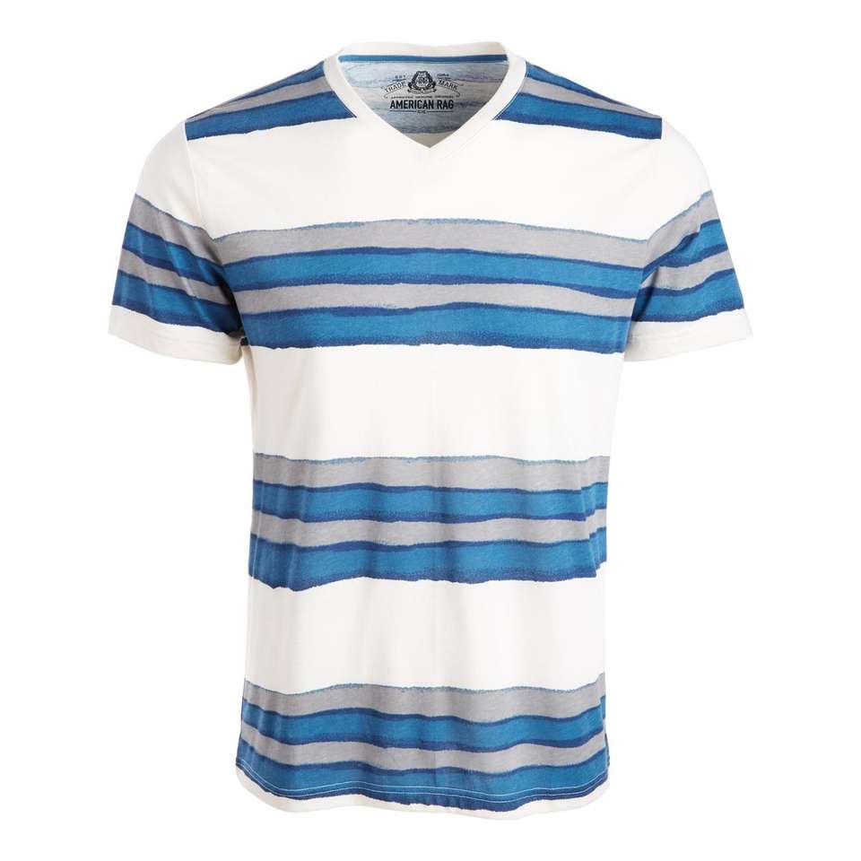 Camiseta de Hombre American Rag con Cuello en V a Rayas, Diseño Sólido, Tejido de Punto de 240 Gramos, Talla XX-Large, Blanca, Camisetas Estampadas Comprimidas