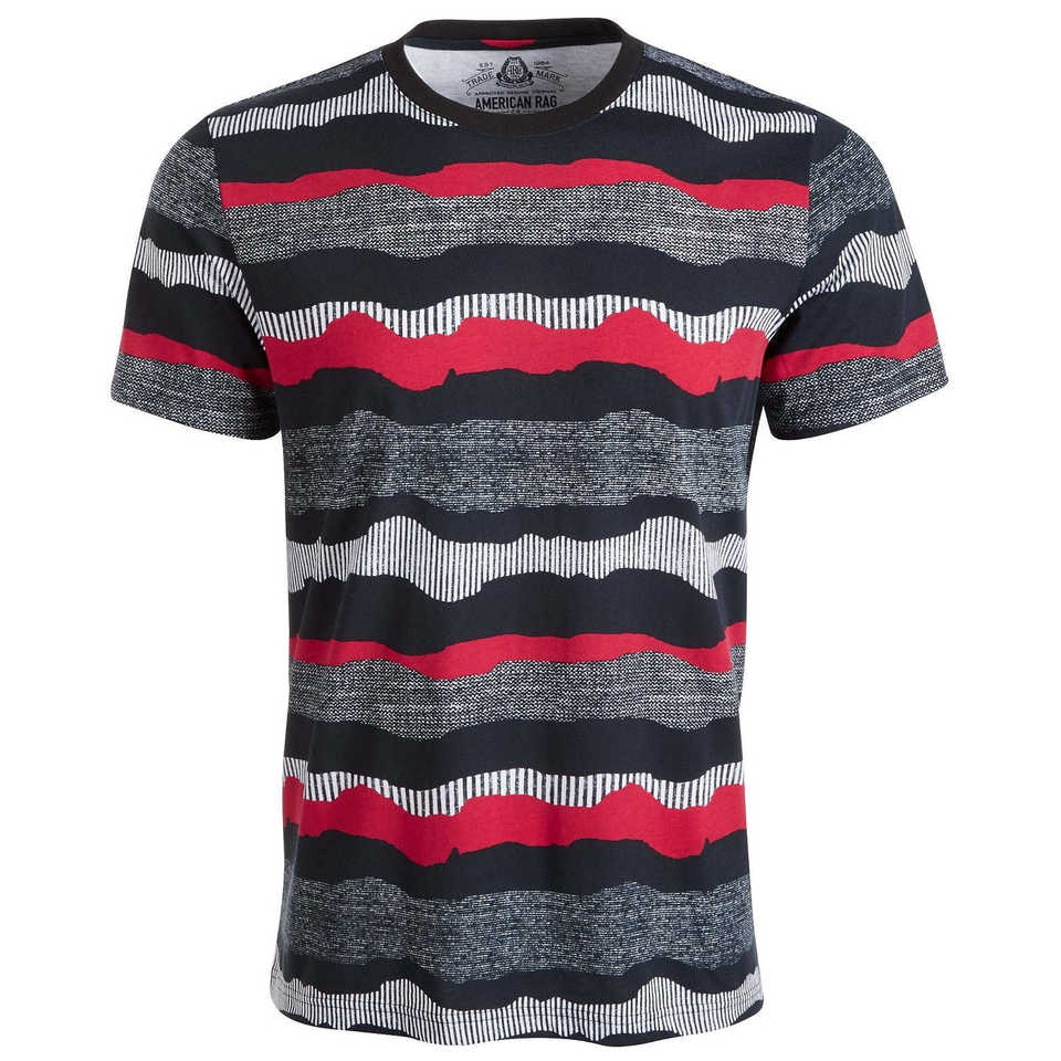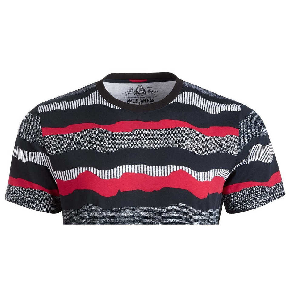 Camiseta de hombre American Rag con textura de rayas onduladas, negra, talla XL, camisetas de moda con estampado animado.