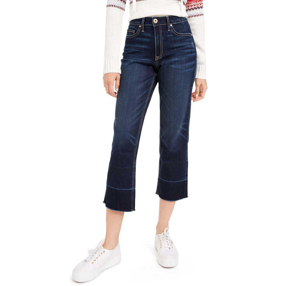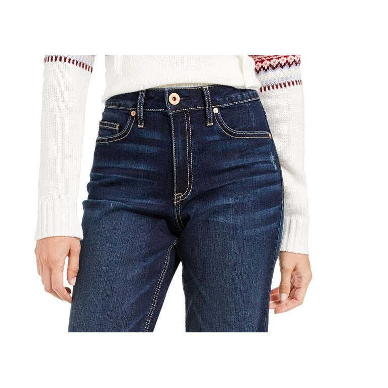 Jeans de mezclilla de tiro alto para mujer American Rag, corte bootcut, lavado oscuro, con logo en la cintura, talla 5