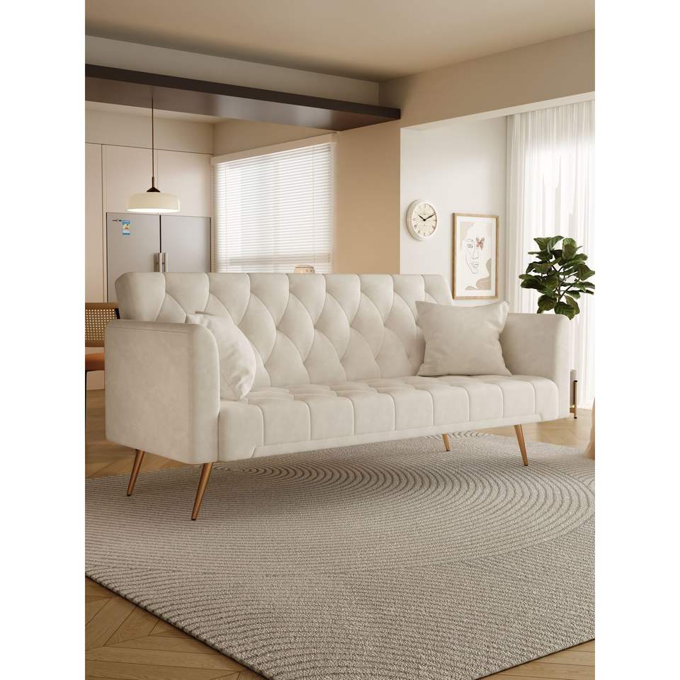 Sofá Cama Convertible Americano Retro de 71 Pulgadas, Terciopelo Beige, con Función de Cama Plegable, para Espacios Pequeños como Sala de Estar, Dormitorio u Oficina