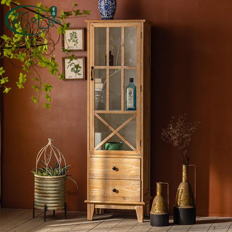 Vitrina de estilo retro americano con puerta de vidrio, aparador de almacenamiento de varias capas para sala de estar, gabinete para entrada.