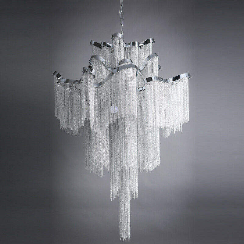 American Rustic LED Silver Aluminio Chandelier Luces colgantes Nuevo diseño Cadena grande Borla Nordic Chandelier
