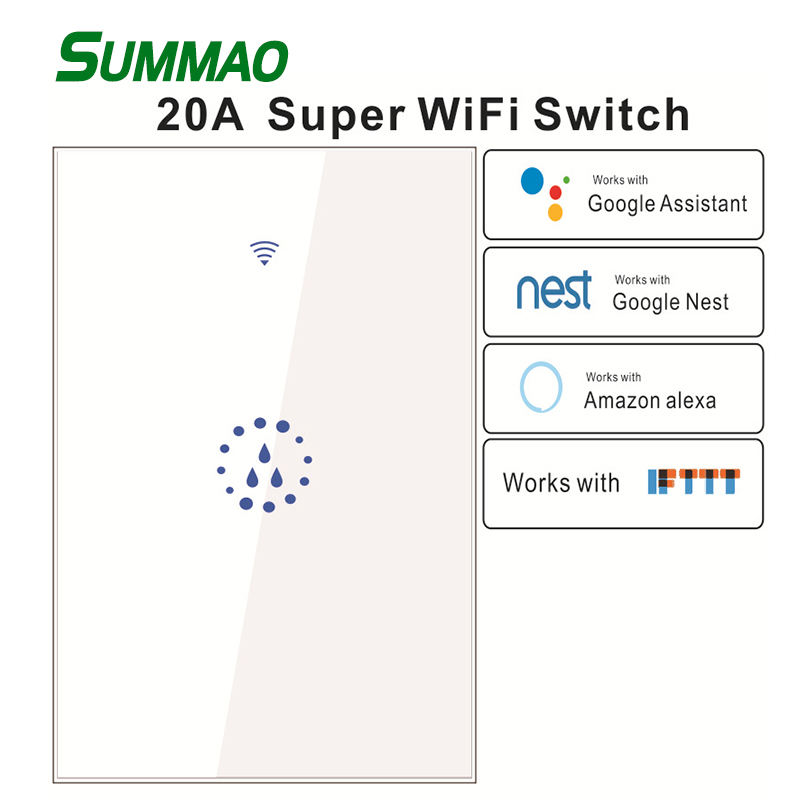 American Smart Home WiFi Control de voz 20A 250V Calentador de agua Caldera Smart WIFI Interruptor táctil Compatible con Alexa/Google