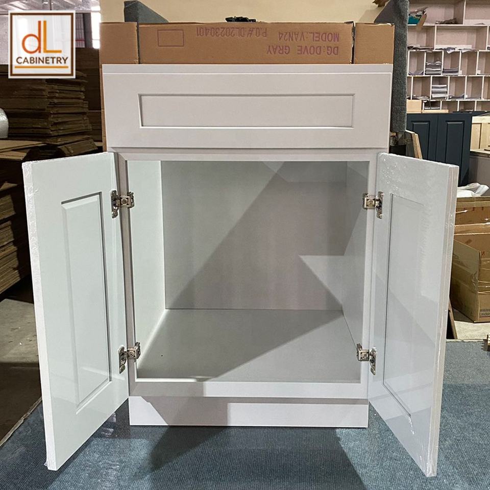 Modelo estándar americano VAN24, pintura gris, madera maciza y puerta de coctelera de MDF, gabinetes de fregadero de cocina y baño, tocador para proyecto