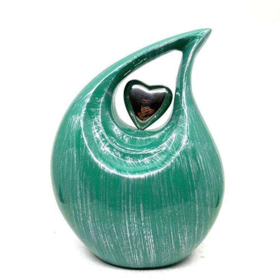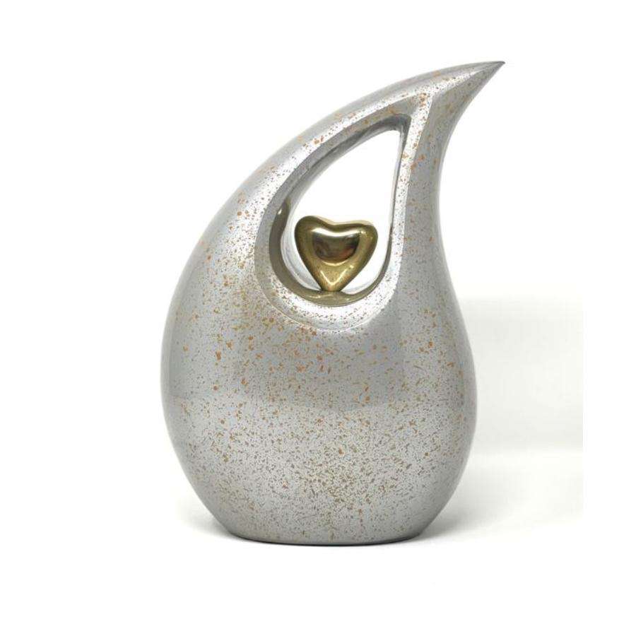 Urna de cremación en forma de lágrima de aluminio de estilo americano, corazón pequeño de Metal en el centro, suministros funerarios, urnas para adultos para recuerdo de cenizas