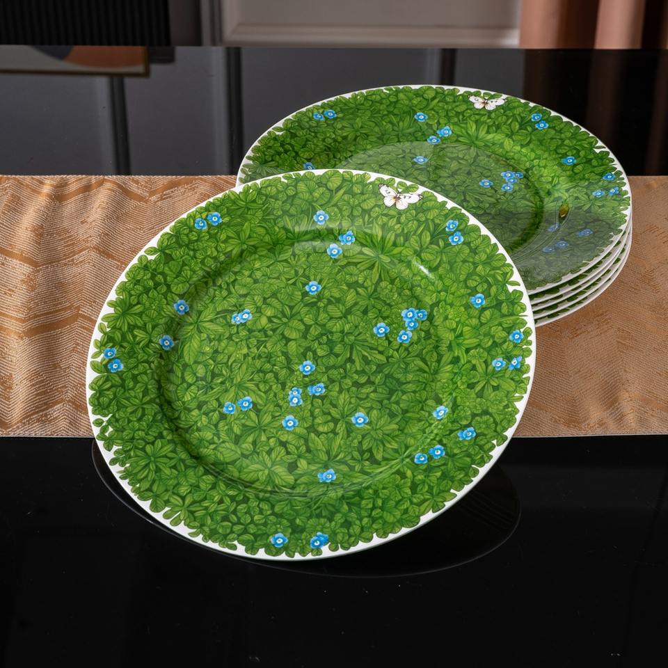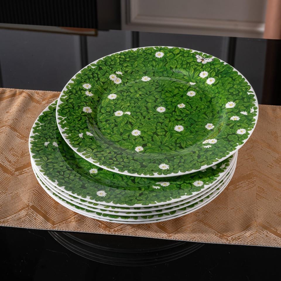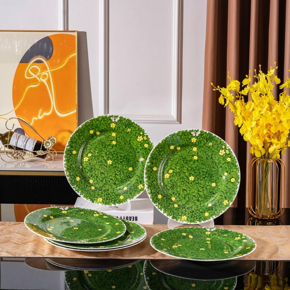 Juego de Platos de Cerámica de Porcelana Fina Estilo Americano Moderno y Sencillo para Eventos Escolares y Fiestas, 6 Piezas con Diseño Floral, No Tóxico, 12 Pulgadas