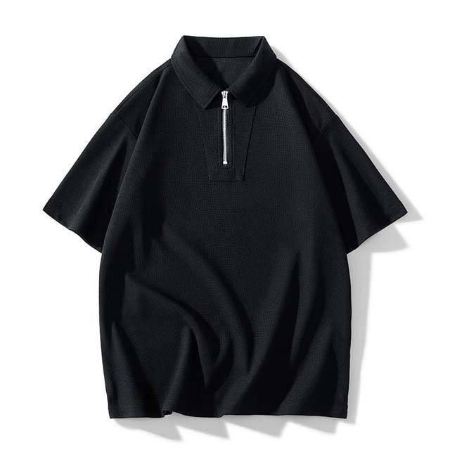 Camiseta Polo Estilo Americano con Media Cremallera y Hombros Caídos, Conjunto de 2 Piezas, Color Negro y Blanco
