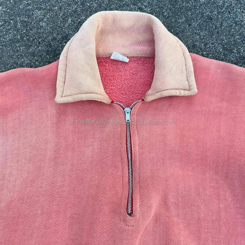 American Vintage media cremallera manga larga bordado sudadera Turn Down Collar Unisex sudaderas media cremallera