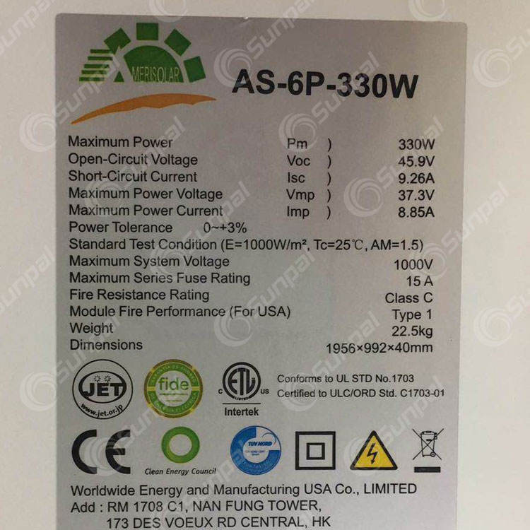 Panel Solar Mono Perc de Calidad Amerisolar, 380W 390W 400 Watts 410 Watts, Paneles Solares Fotovoltaicos Monocristalinos, Precio en Existencia