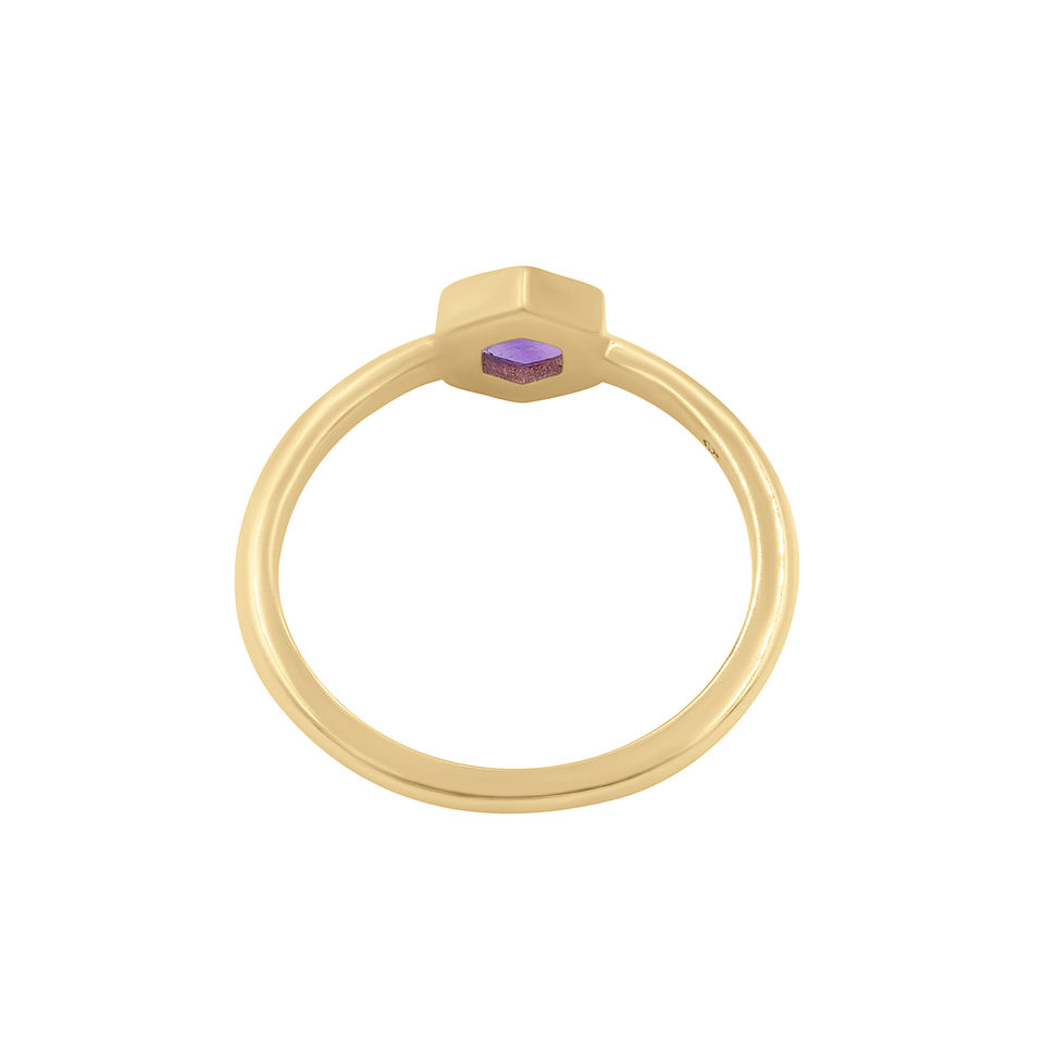 Nombre del Producto:Anillo de plata de ley 925 con baño de oro y amatista en forma hexagonal