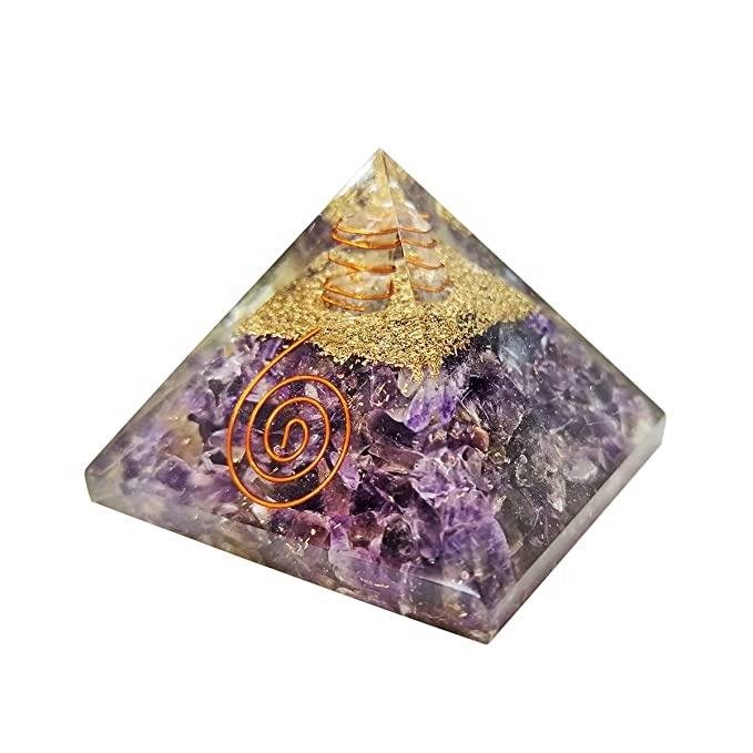 Pirámide de amatista orgonita, protección EMF para decoración del hogar, curación, Vaastu, meditación
