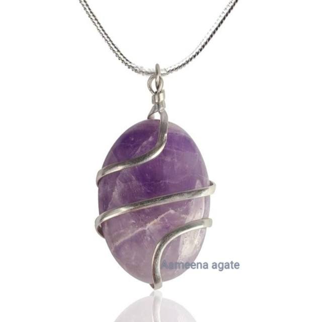 Colgante con forma ovalada de amatista, collar envuelto en alambre de cristal, venta al por mayor
