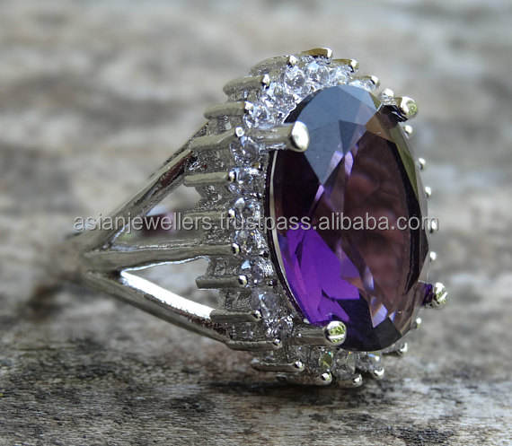 Amatista de cuarzo y CZ, anillo de piedras preciosas, Plata de Ley 925, hecho a mano, joyería de plata