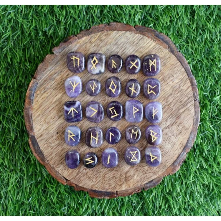 Juegos de Runas de amatista Elder Futhrak Rune Set Gemstone Runic Set