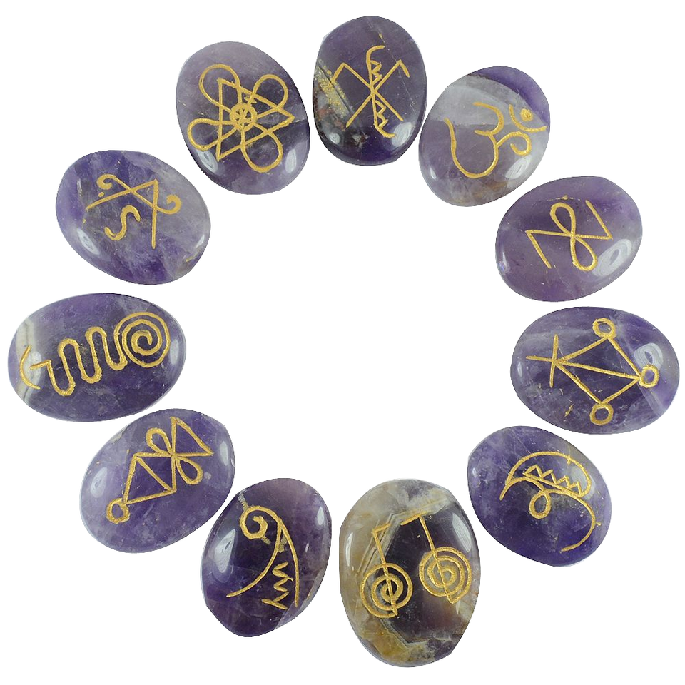 Juego de Piedras de Amatista Talladas a Mano, 9 Piezas de Forma Ovalada, Karuna Reiki, Gema Semipreciosa de Ágata para Artesanía de Feng Shui