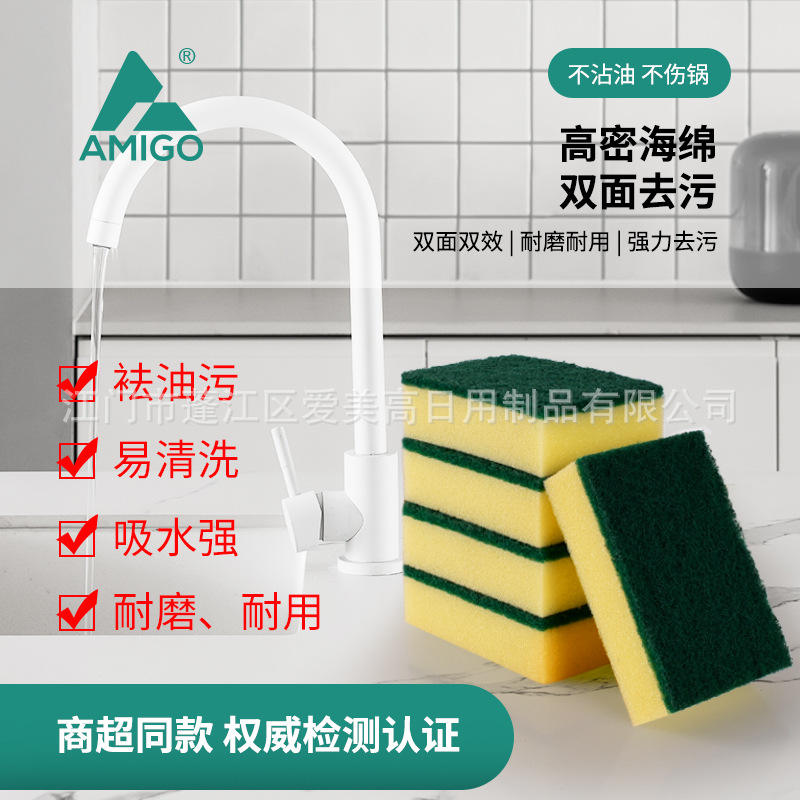 Esponja de doble cara Amigo, rectangular, de limpieza fuerte para ollas y sartenes, para uso en la cocina.