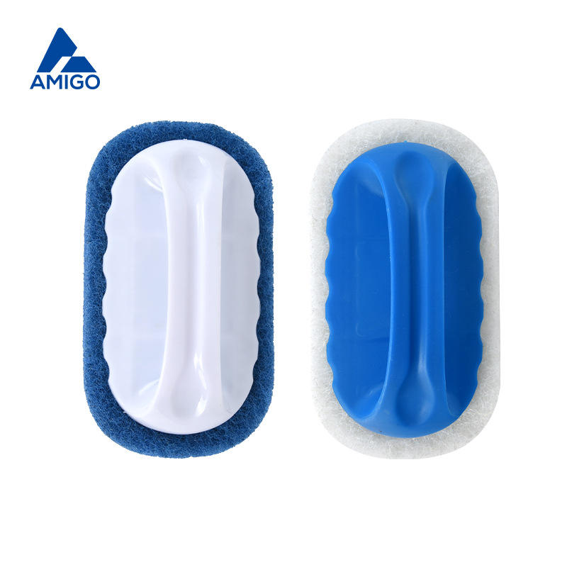Estropajo Amigo con mango, rectangular, azul y blanco, para limpiar azulejos y fregaderos de cocina