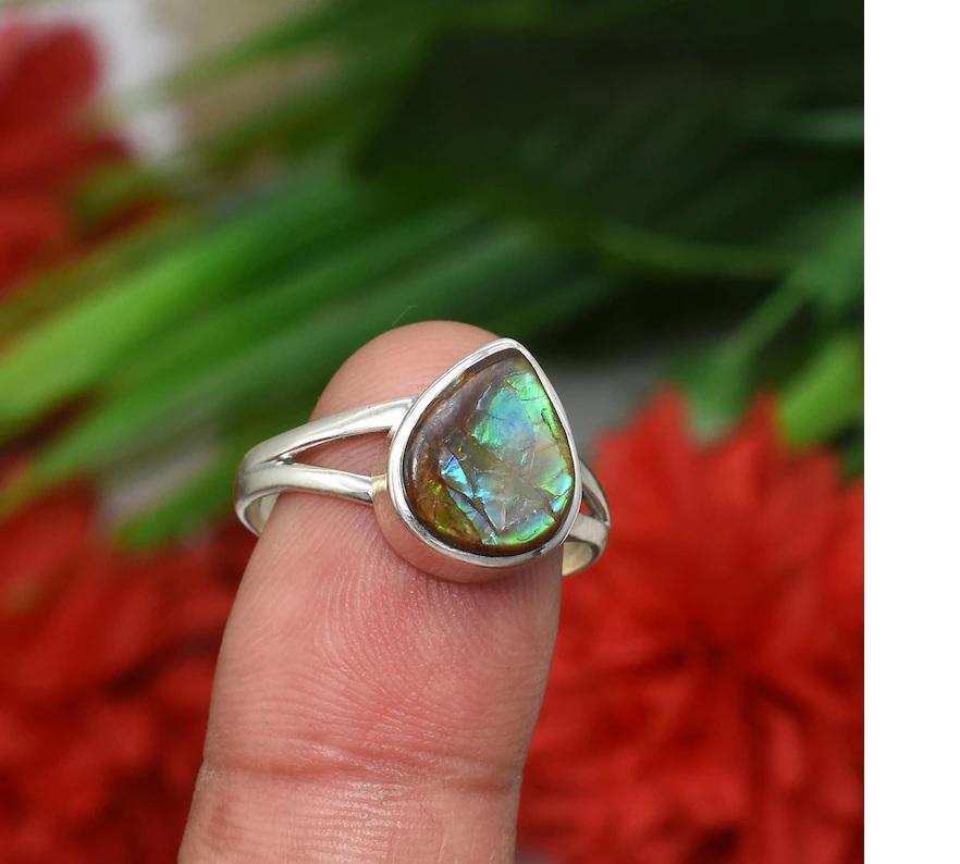 Nombre:Anillo de piedras preciosas Ammolite