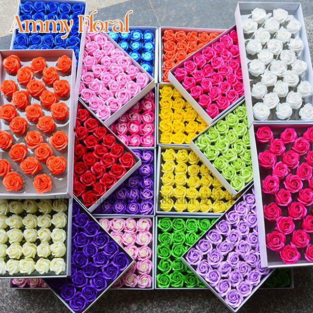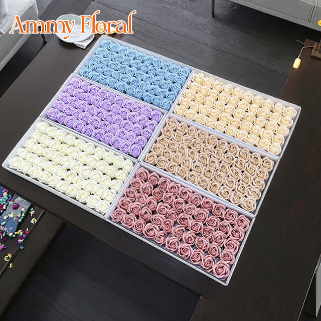 Jabones de Rosa Ammy, Decoración Floral para el Hogar, Jabón de Rosa de 3 Capas, Cabeza de Rosa Fragante de 5 cm, Ramo de Rosas Artificiales, Día de San Valentín