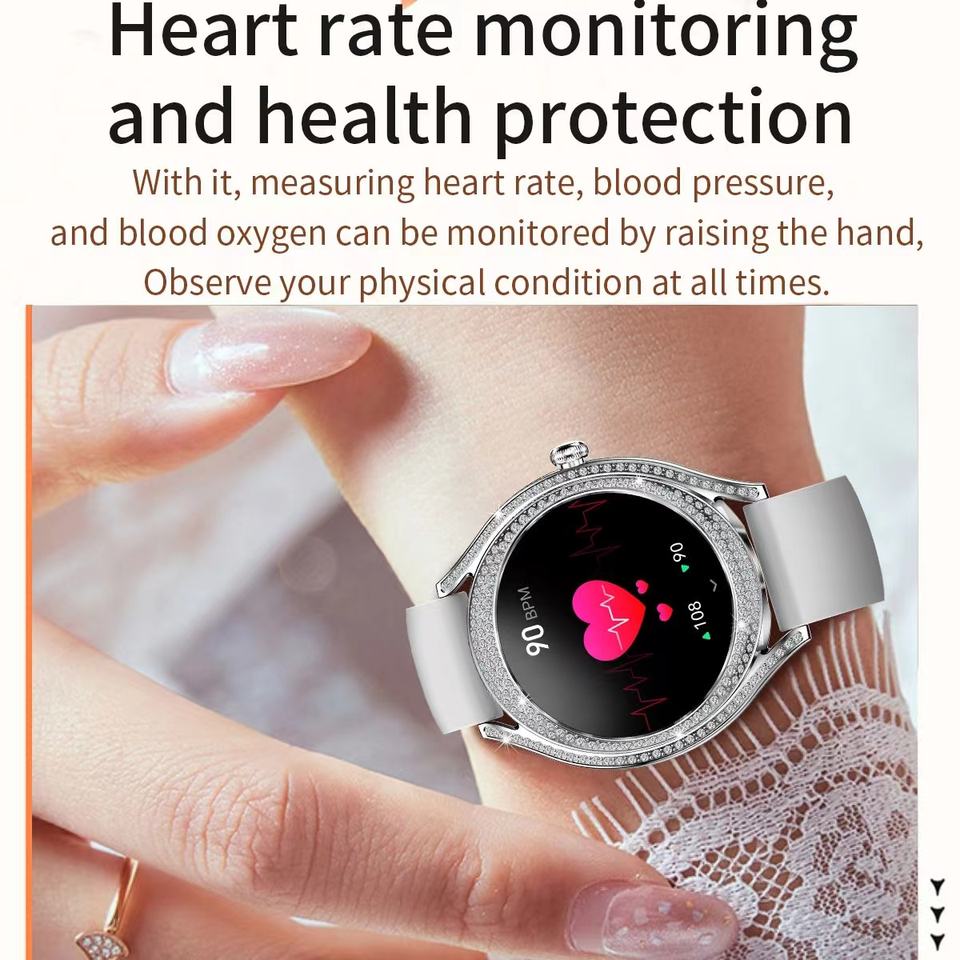 Función:Cronógrafo, Calendario, Reloj despertador, Reserva de marcha, Control remoto, Rastreador de sueño, Medición de velocidad, Podómetro, Recordatorio de llamada, Respuesta telefónica, Mensaje emergente, Recordatorio de mensajes, Marcar llamada, Seguimiento de la actividad, Llamada de voz, Correo electrónico, Reproductor DE MÚSICA, Recordatorio sedentario, Botón SOS, Gestión menstrual, Asistente de voz AI
