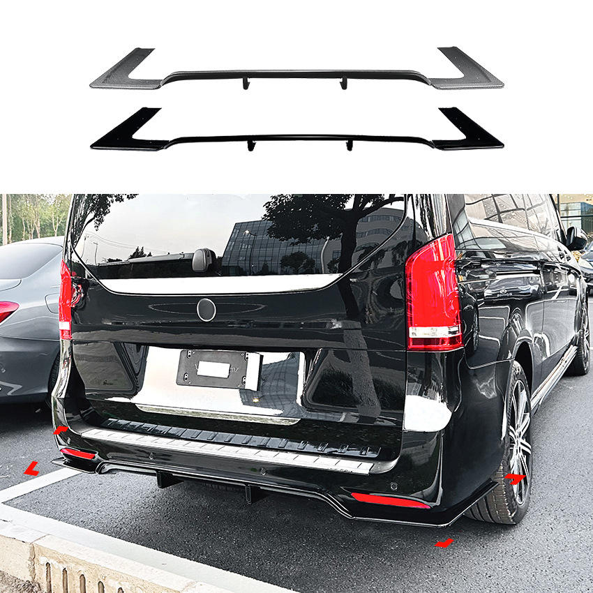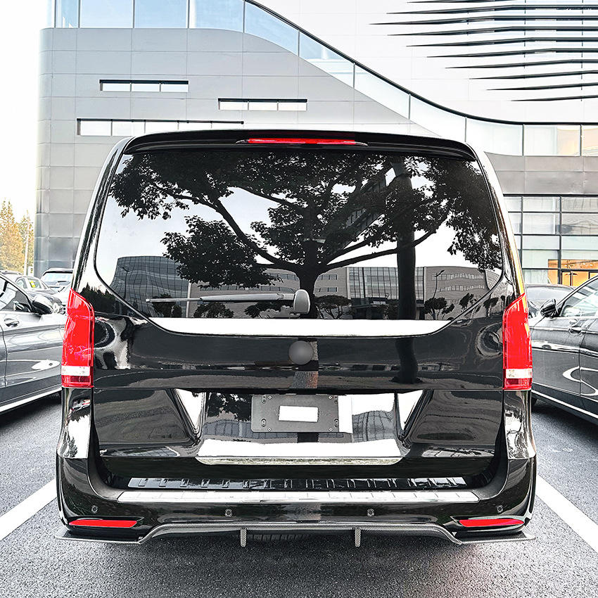 Alerón trasero tipo labio para parachoques Amp-Z para Mercedes-Benz Clase V V260 W447 AMG Line 2018-23, acabado mate con textura de fibra de carbono en negro piano.