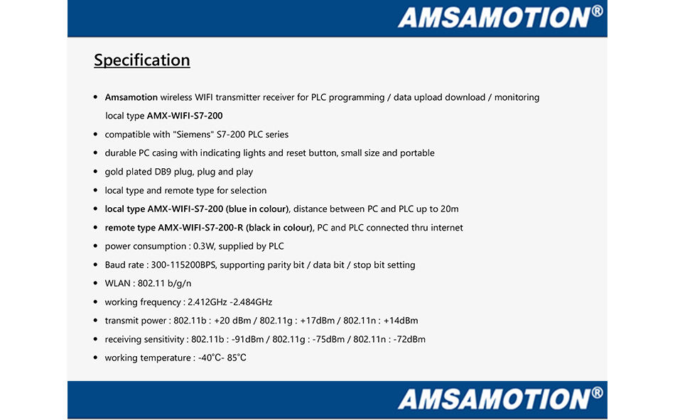 Amsamotion AMX-WIFI-S7-200 Transmisor y Receptor WIFI Inalámbrico, Programación PLC PAC, Carga y Descarga de Datos, Monitoreo Compatible