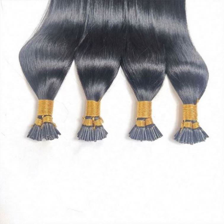 Logotipo Personalizado Amygirl 1 # Extensiones de Cabello Humano Virgen Remy de Queratina de 16, 18 y 20 Pulgadas, Ondulado Profundo Suelto, Pre-Adheridas con Punta I, Grado 9A-12A