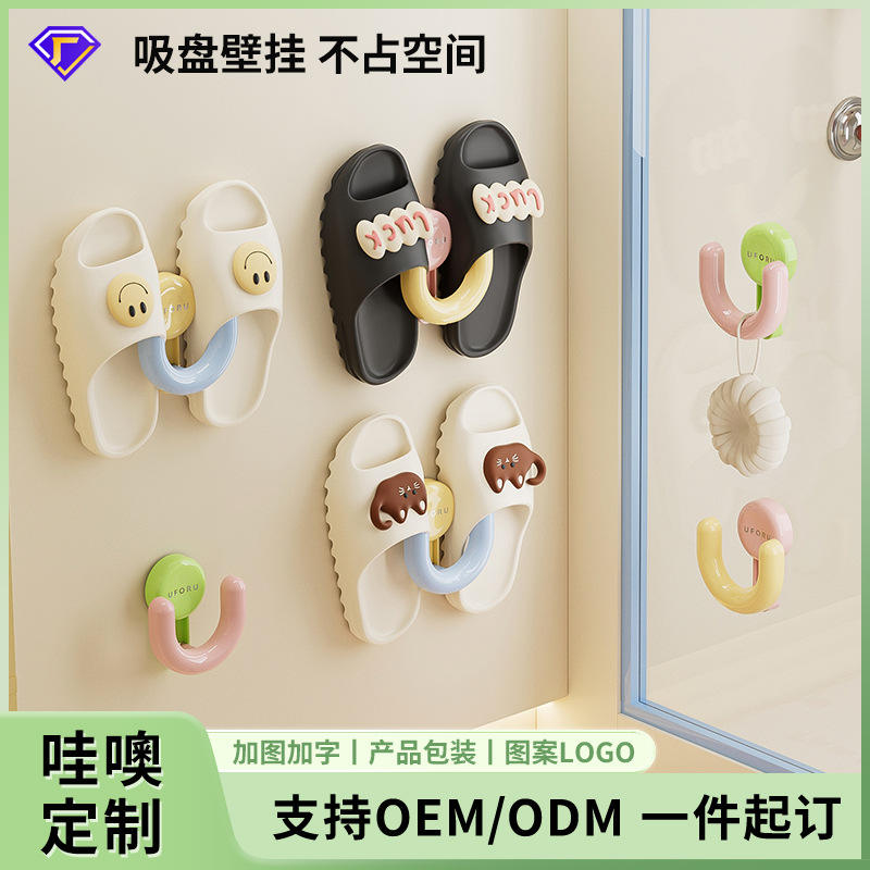 An Zhenya Soporte de pared con ventosa para zapatillas, sin taladro, 2 ganchos, gancho de almacenamiento extraíble para baño