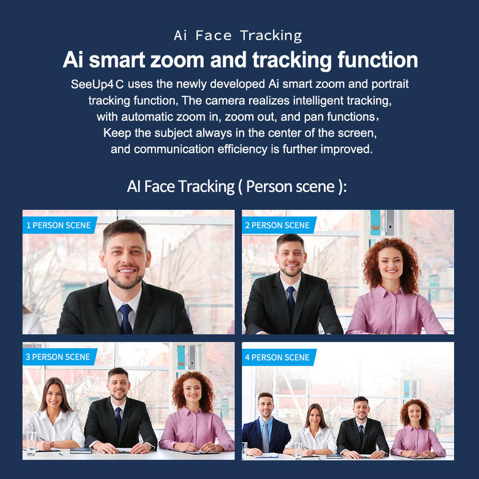 Feature:Ai auto framing and face tracking, speaker tracking