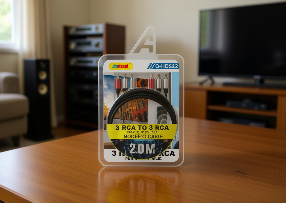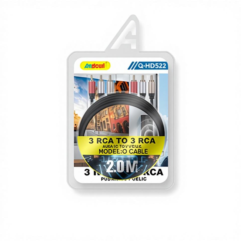 Cable de Audio y Video AnDewl 3RCA a 3RCA de 2.0M, Macho a Macho, Conductor de Cobre, Revestimiento de PVC, Blindaje Trenzado para Cine en Casa