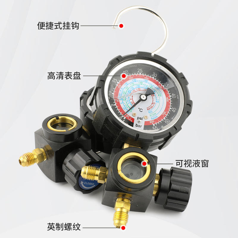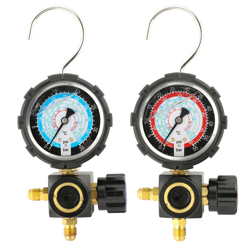 Manómetro compuesto analógico R22 R32 R410 para refrigerante con conexión roscada para carga de aire acondicionado